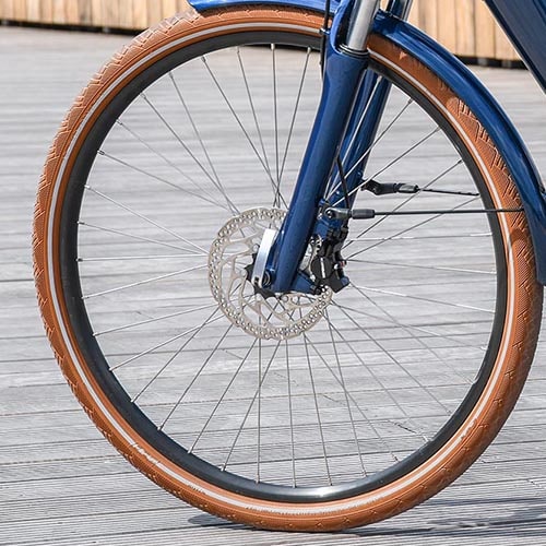 Avec une transmission Shimano (8 vitesses), des freins à disque hydrauliques pour un freinage sûr par tous les temps, des poignées ergonomiques, pneus anti-crevaison et garde-boues assortis, ce vélo est pensé pour un confort d’usage au quotidien.