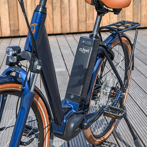 La batterie O2feel iPowerFit 400 Wh est intégrée au cadre, ce qui améliore l’esthétique et la répartition du poids tout en offrant une autonomie suffisante pour les trajets quotidiens (jusqu’à ~100 km en mode éco selon l’usage) — sans compromis sur l’encombrement.