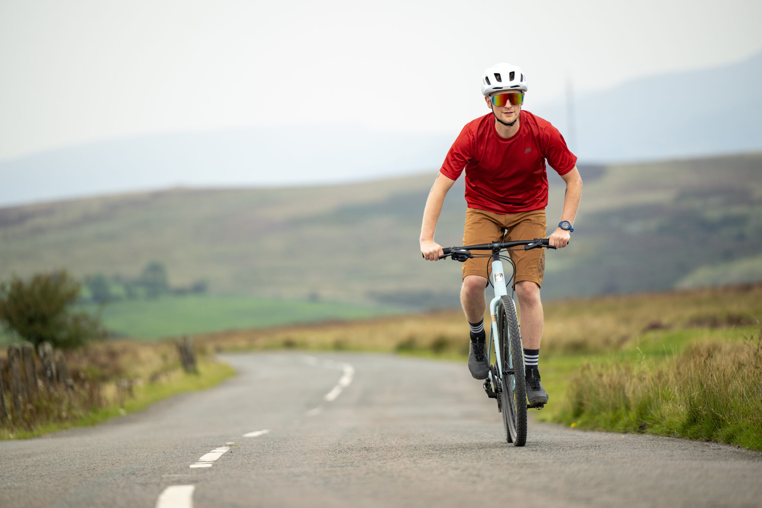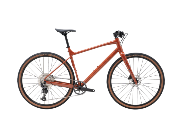 un vélo hybride route / gravel / VTT, stable, ludique et polyvalent, avec un cintre plat rassurant.